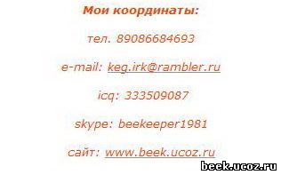 Добро пожаловать на официальный сайт личного подсобного хозяйства (ЛПХ) профессионального иркутского пчеловода Евгения Клипина (ник в интернете - БиК (от англ. BeeK))!!! Данный сайт полностью посвящён пчеловодству и будет интересен как пчеловодам, так и потребителям продуктов пчеловодства. Хочется отметить, что мы распространяем только свою продукцию, полученную на иркутской земле. Перепродажей чужого мёда не занимаемся!